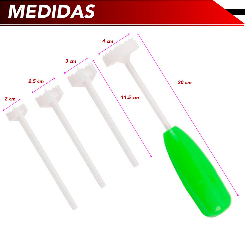 - Los 4 cabezales del descorazonador RD Royal Cook con diferentes diámetros que podrás usar en diferentes ingredientes y rellenar sin preocuparte porque estén rotos o dañados