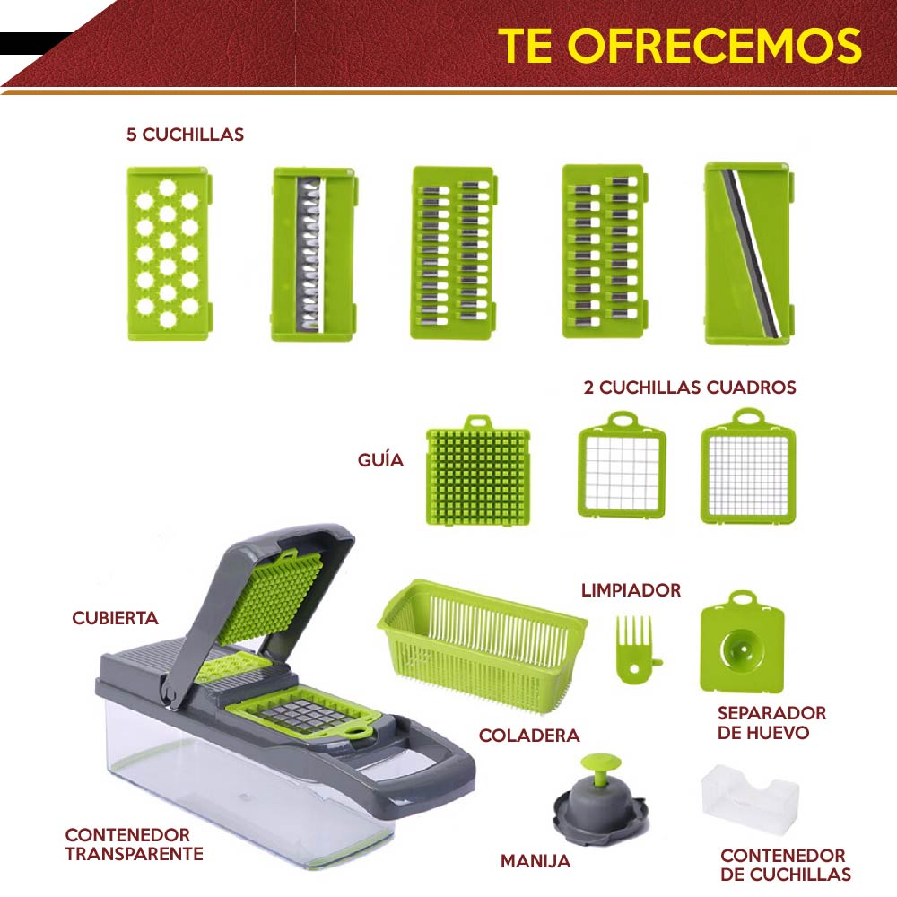 RD Royal Cook Nicer Dicer Plus es perfecto para cocineros profesionales y amas de casa con muy poco tiempo. Es muy fácil de usar en casa puedes realizar desde las comidas más sencillas hasta grandes platos culinarios en el menor tiempo posible. Crea grandes platillos en minutos, puedes cortar, rebanar, rallar y más, conviértete en un verdadero Chef profesional sin necesidad de costosos utensilios.