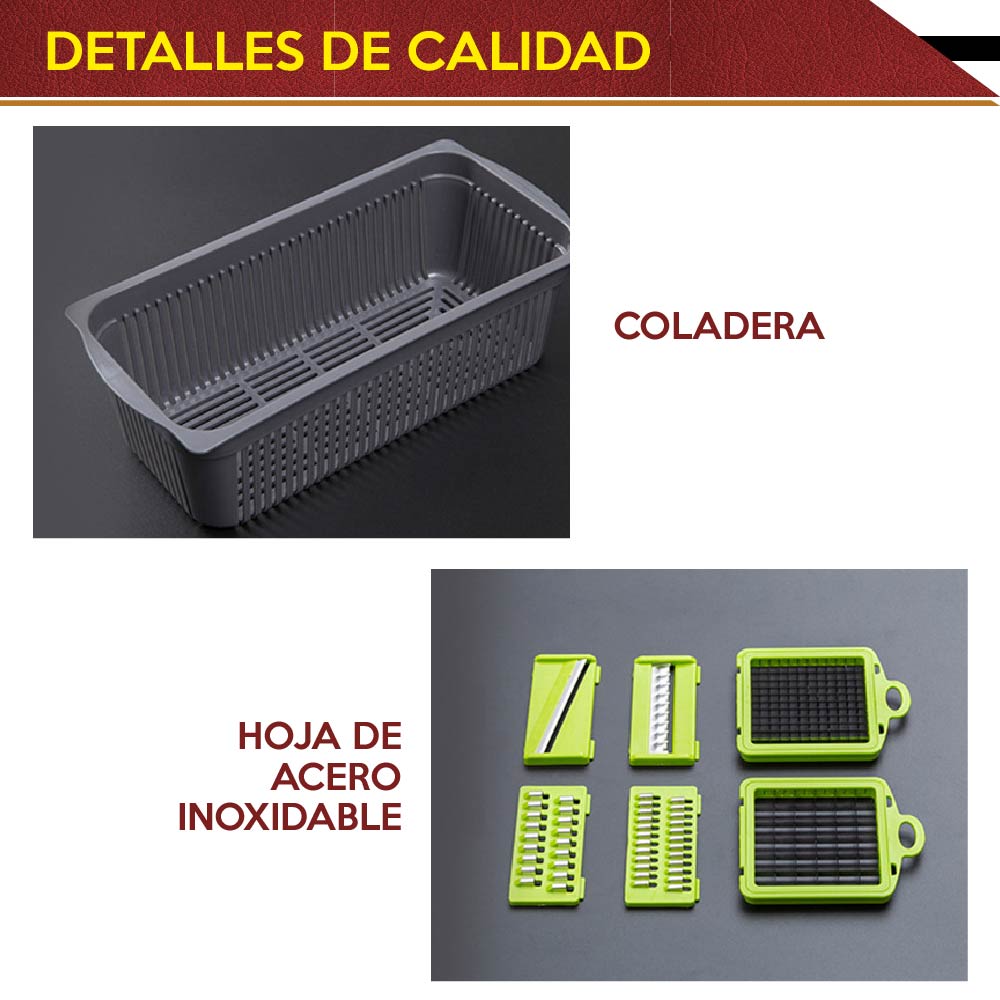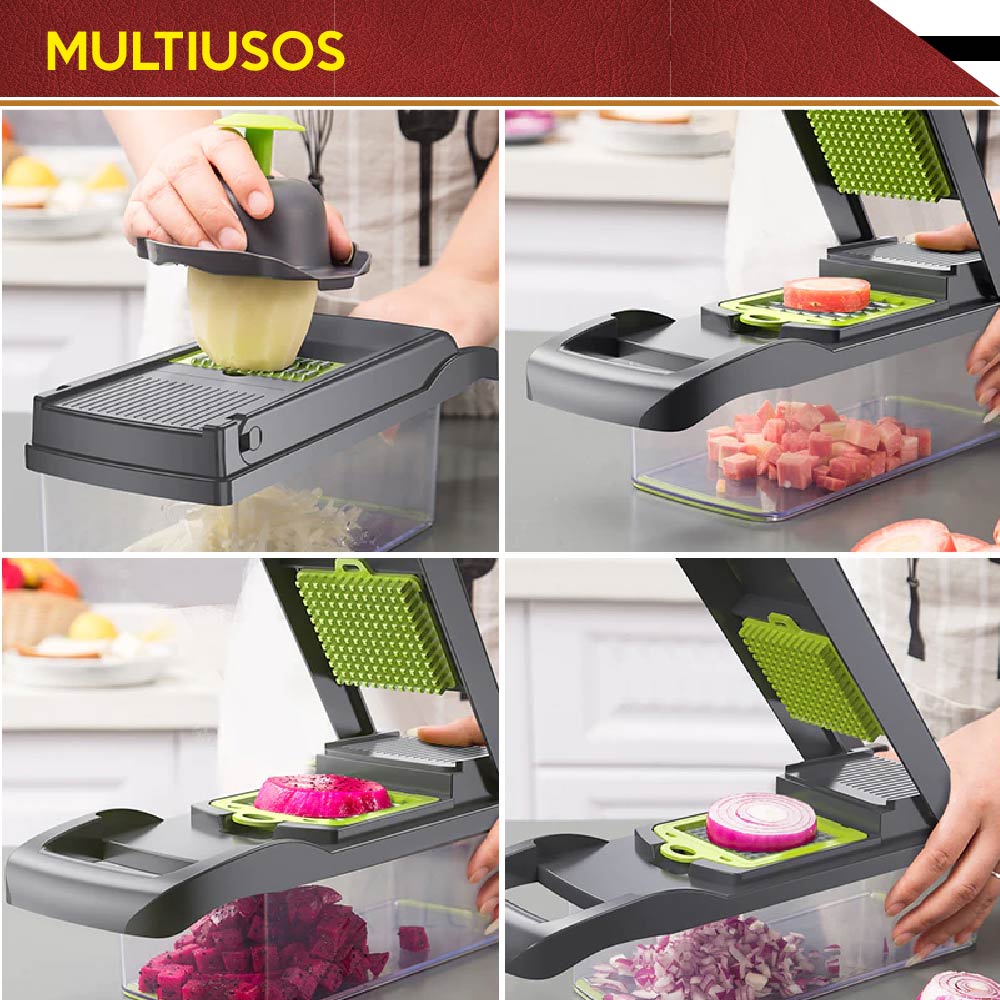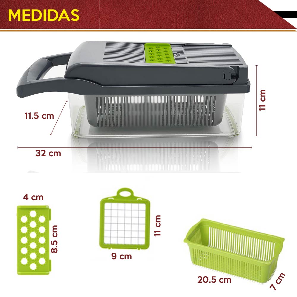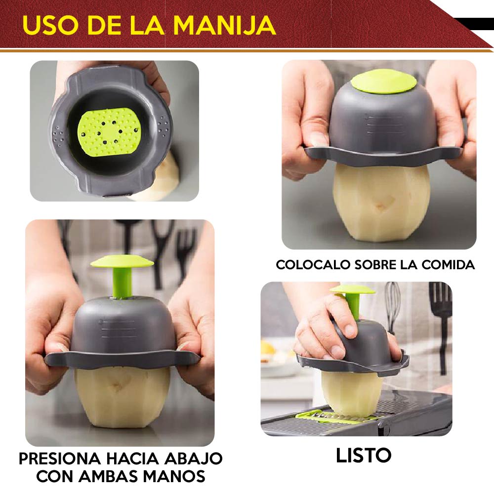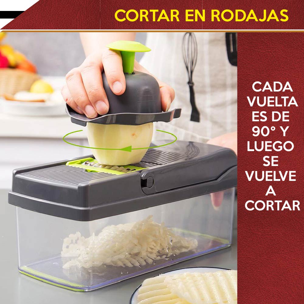 - Novedoso cortador de vegetales: Combina 4 superficies de trabajo en un solo recipiente. Fácil de operar funciona solo presionando