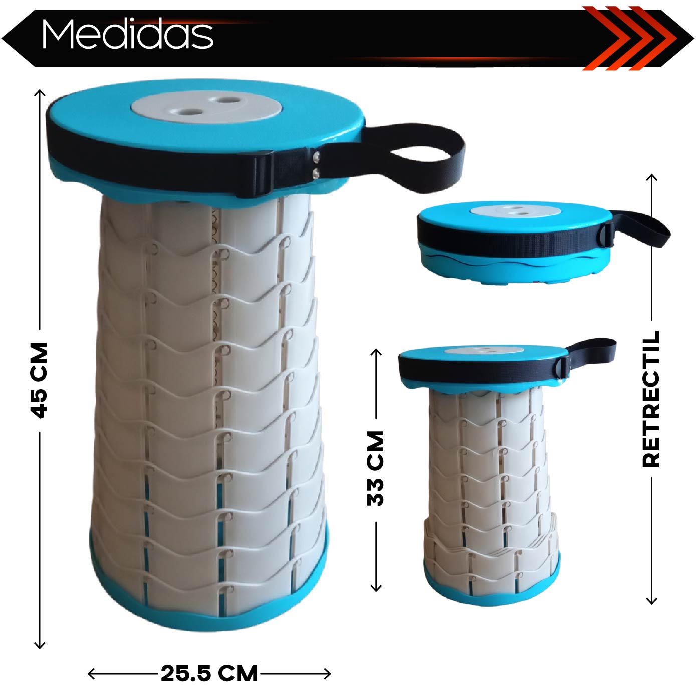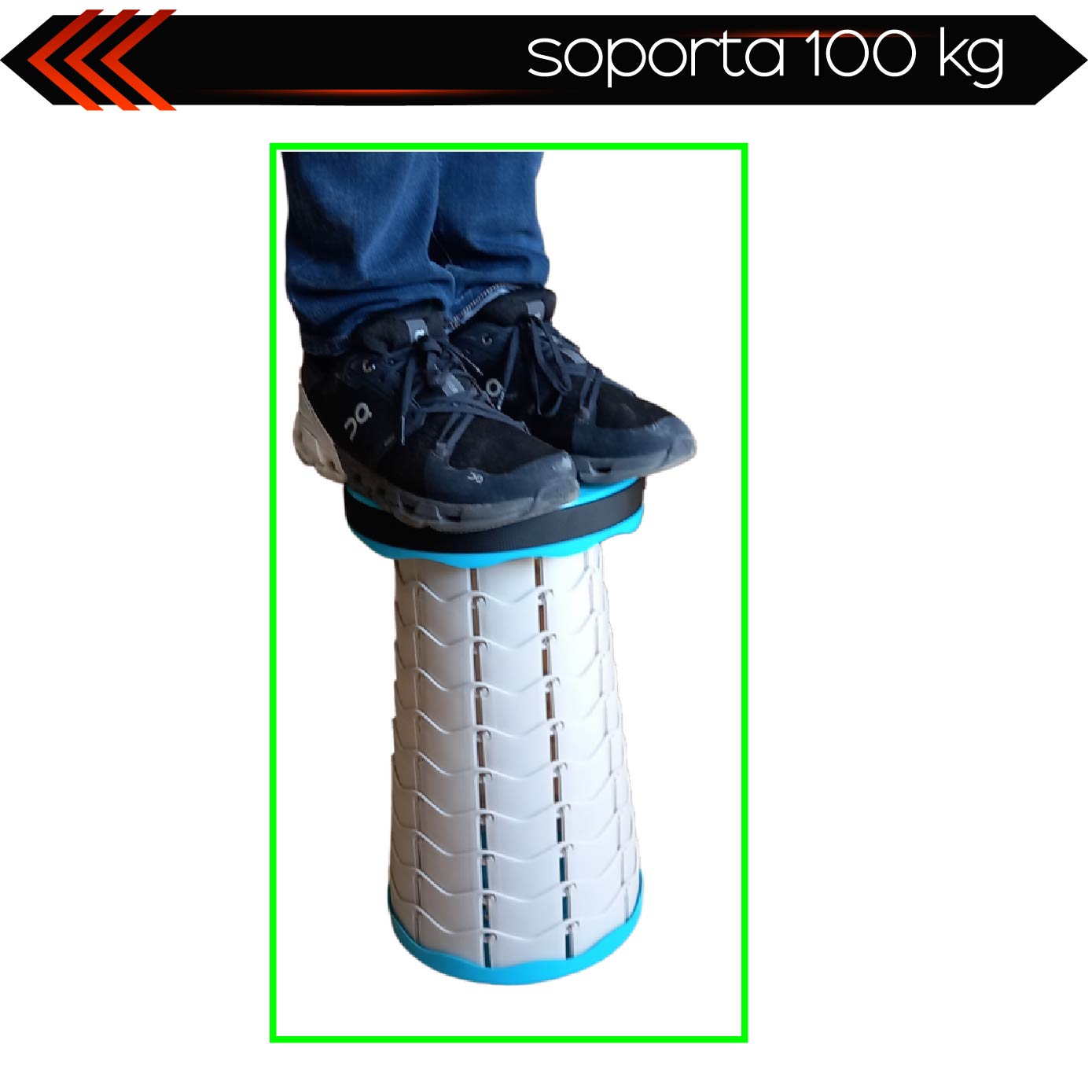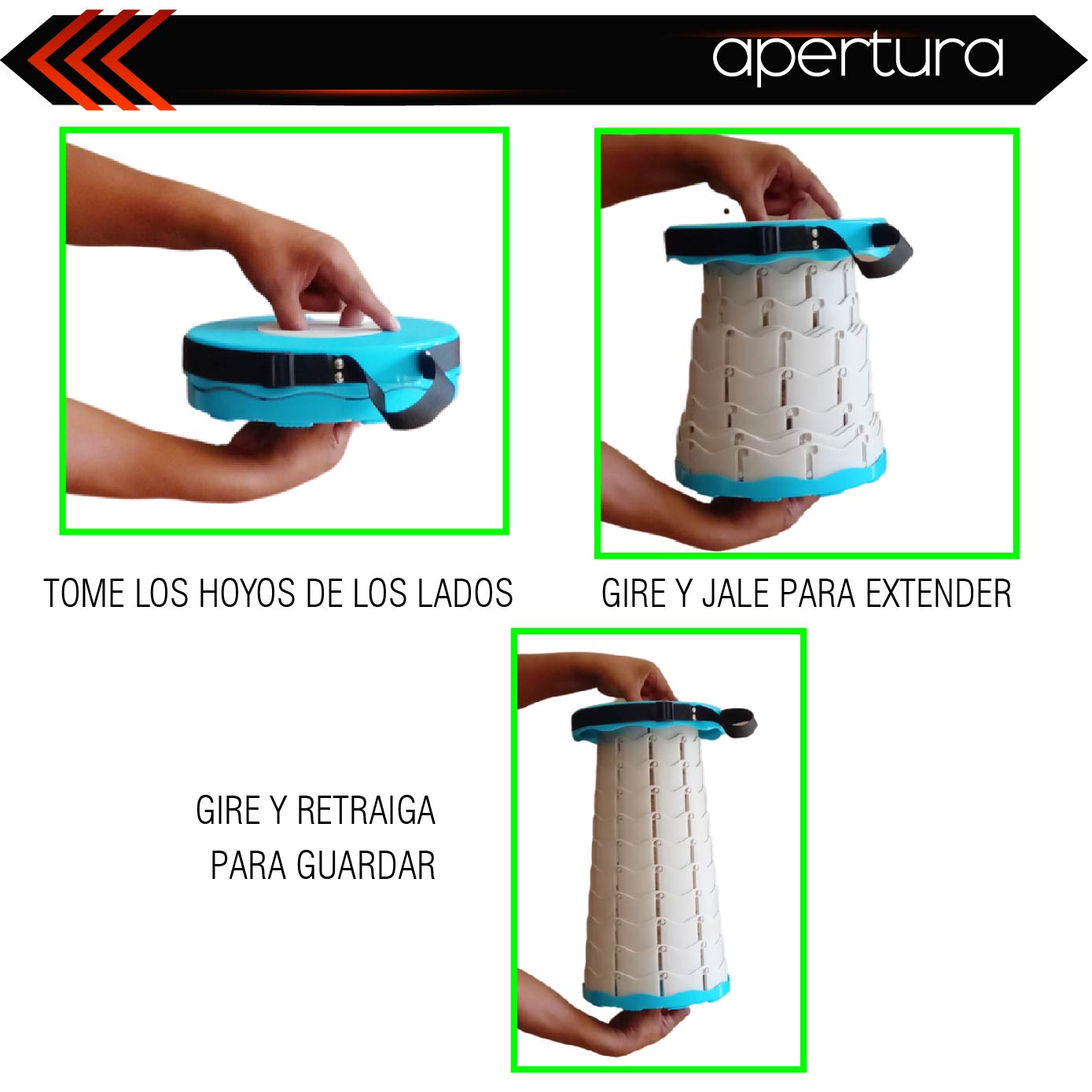 Por lo que el taburete telescópico es adecuado para todas las edades. Taburete telescópico portátil hecho de PVC de alta resistencia y el cuerpo consta de 120 cerraduras. No busques mas correr por un asiento en el metro o el camión, solo lleva tu banco, extiéndelo y recorre tu camino sentado.
